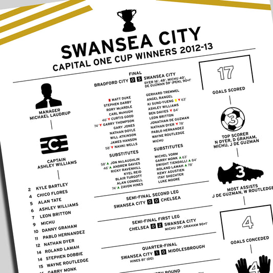 Swansea City 2012-13 Capital One Cup Winning Poster