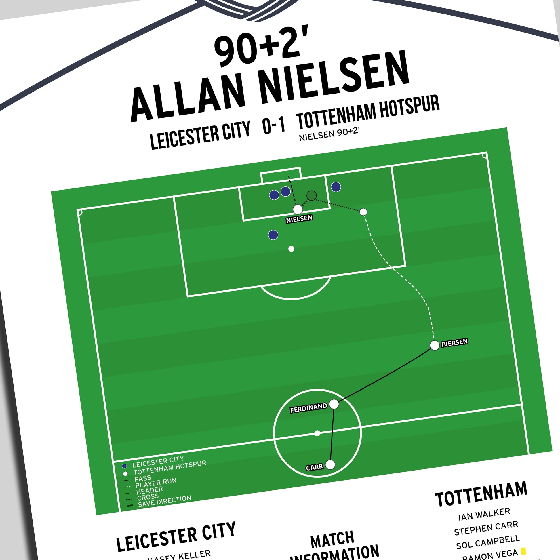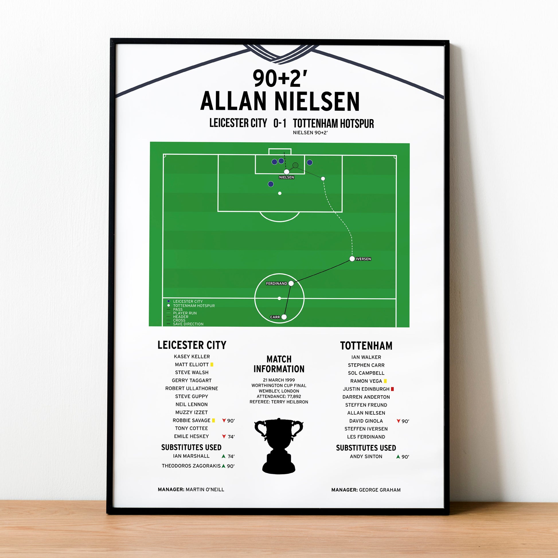 This print showcases Allan Nielsen's last-gasp goal that saw Tottenham Hotspur win the Worthington Cup final in 1999.