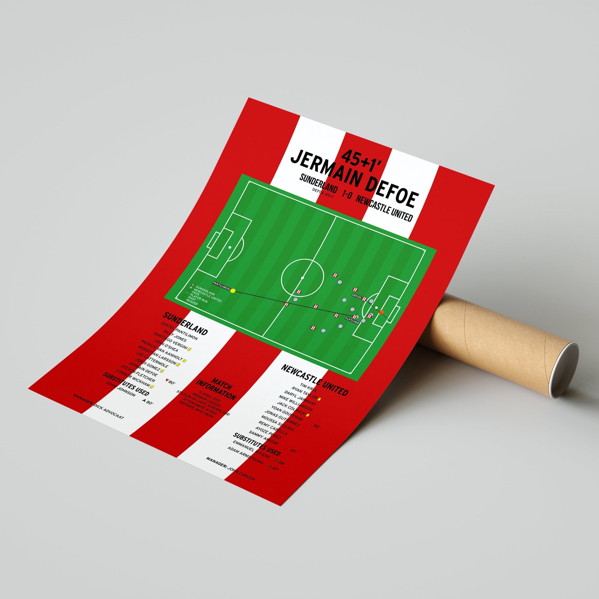 This print showcases Jermain Defoe's stunning volley that saw Sunderland earn the bragging rights over Newcastle.